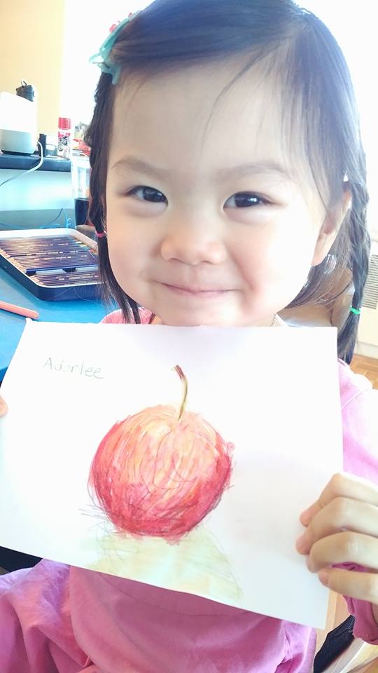 Older children can draw their own items while younger children you can have them just melt colors. I also use these to combine colors in the color wheel to show how colors mix. In this project, I showed my older daughter an apple that we put on the table and had her draw an outline first. Then I proceeded to let her know how shading works. Does the apple look darker in some areas than not? Are the darker sides different colors? Which color tones does it have? Is it just an orange yellow apple or does it have other hues? What about the stem? After diagnosing the entire apple, we started drawing. At this point, my 2/3 year old helped with an outline and then some shading which she followed along with my sample. Mine was the first in the photo, 2 year old at the time in the middle and my 4 year old at the time is on the right. This killed 1 hour.