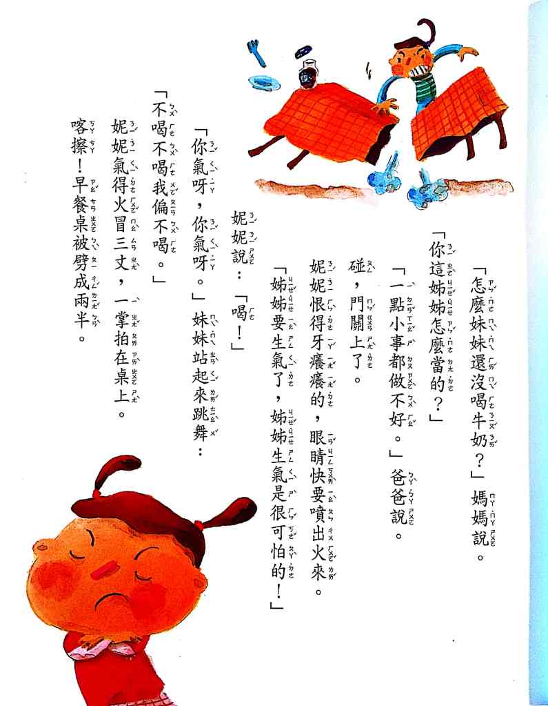 I love this set of books. I’ve been reading my girls stories from this set here and there. There’s a lot of material to learn in here. It’s full of most commonly used phrases and idioms! They do it in the most intuitive way. At the end of each chapter, it goes over the phrases and idioms that’s important in that chapter. I’ve included a whole chapter here for you to do trial reading. This story is from the 7th book in the set and first story. My daughters love this particular story because it’s about a big sister and a playful little sister fighting over when the little one would finally listen and drink her milk. The big sister gets very angry and this is when the idioms pop up and meanings behind it are learned from context in an intuitive manner.