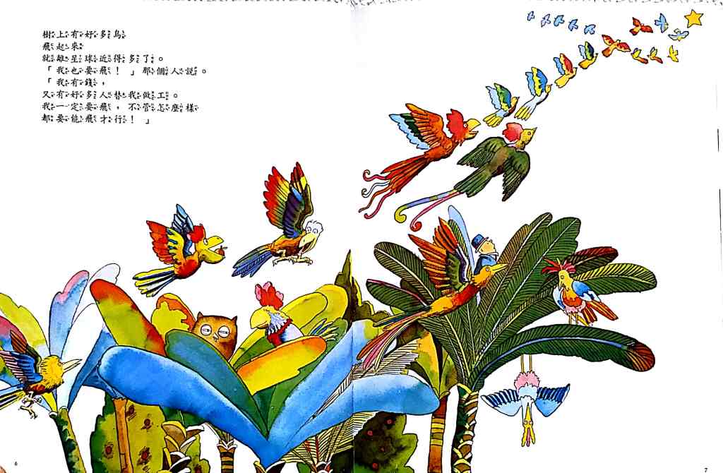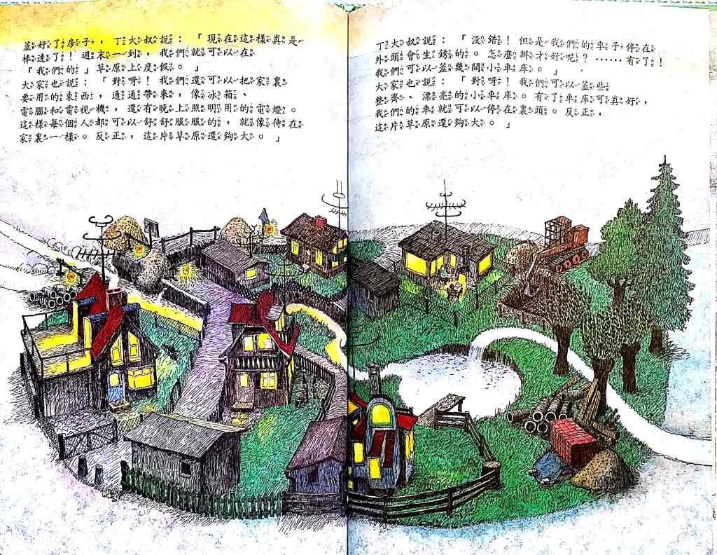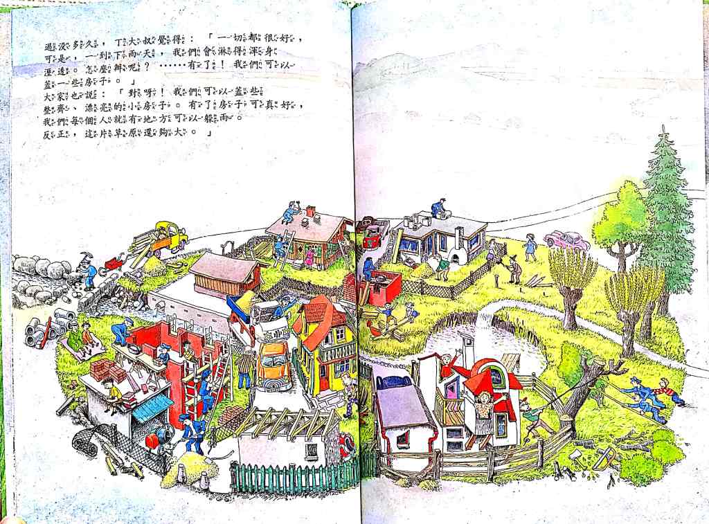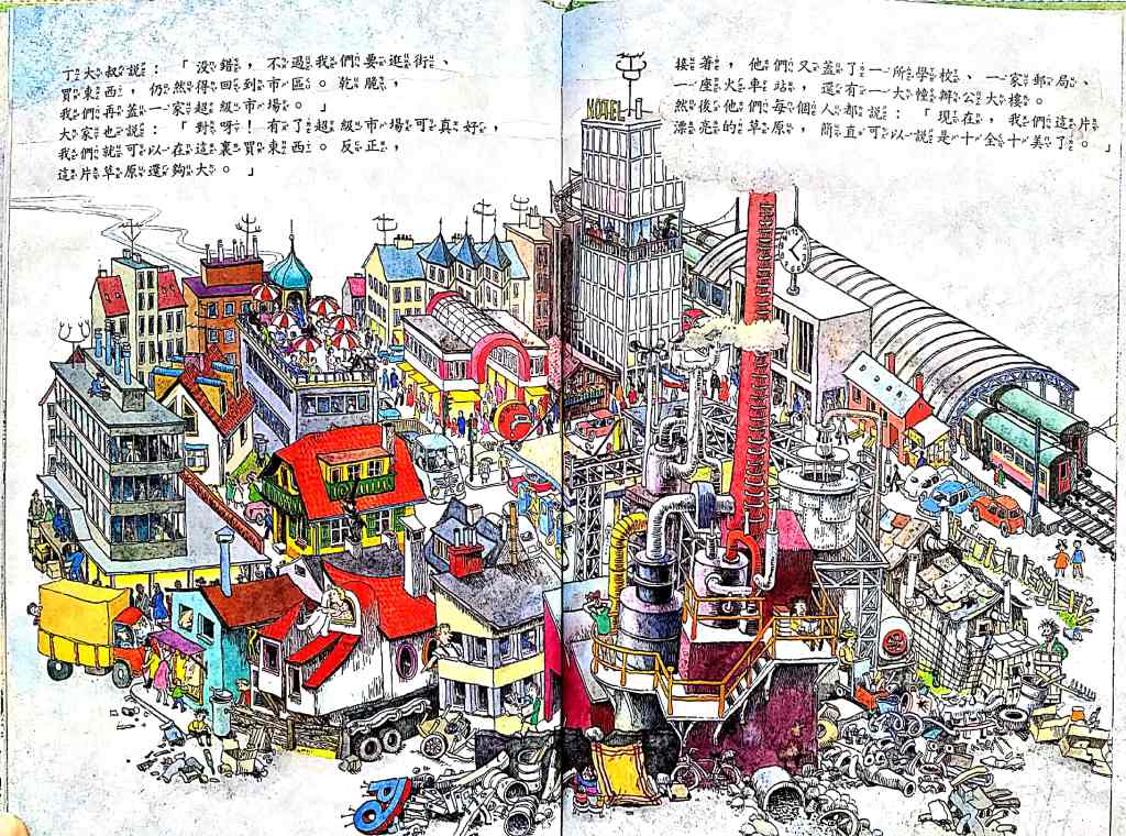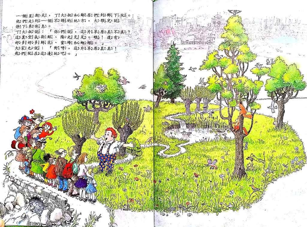 你們說,這片草原美不美?- this one has a crazy good story to it. It starts with a piece of beautiful land. People live on it. They build and build and build until the land is not beautiful anymore because of all the buildings and pollution and then they end up moving away … and “restarting” on another beautiful land (thereby polluting another piece of beautiful green land… again. The cycle continues.