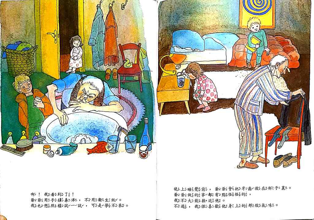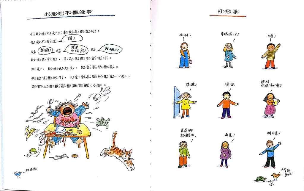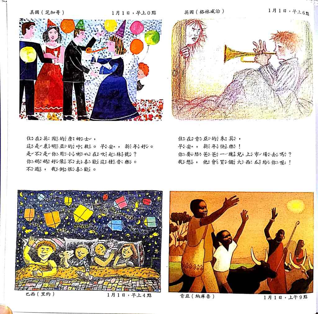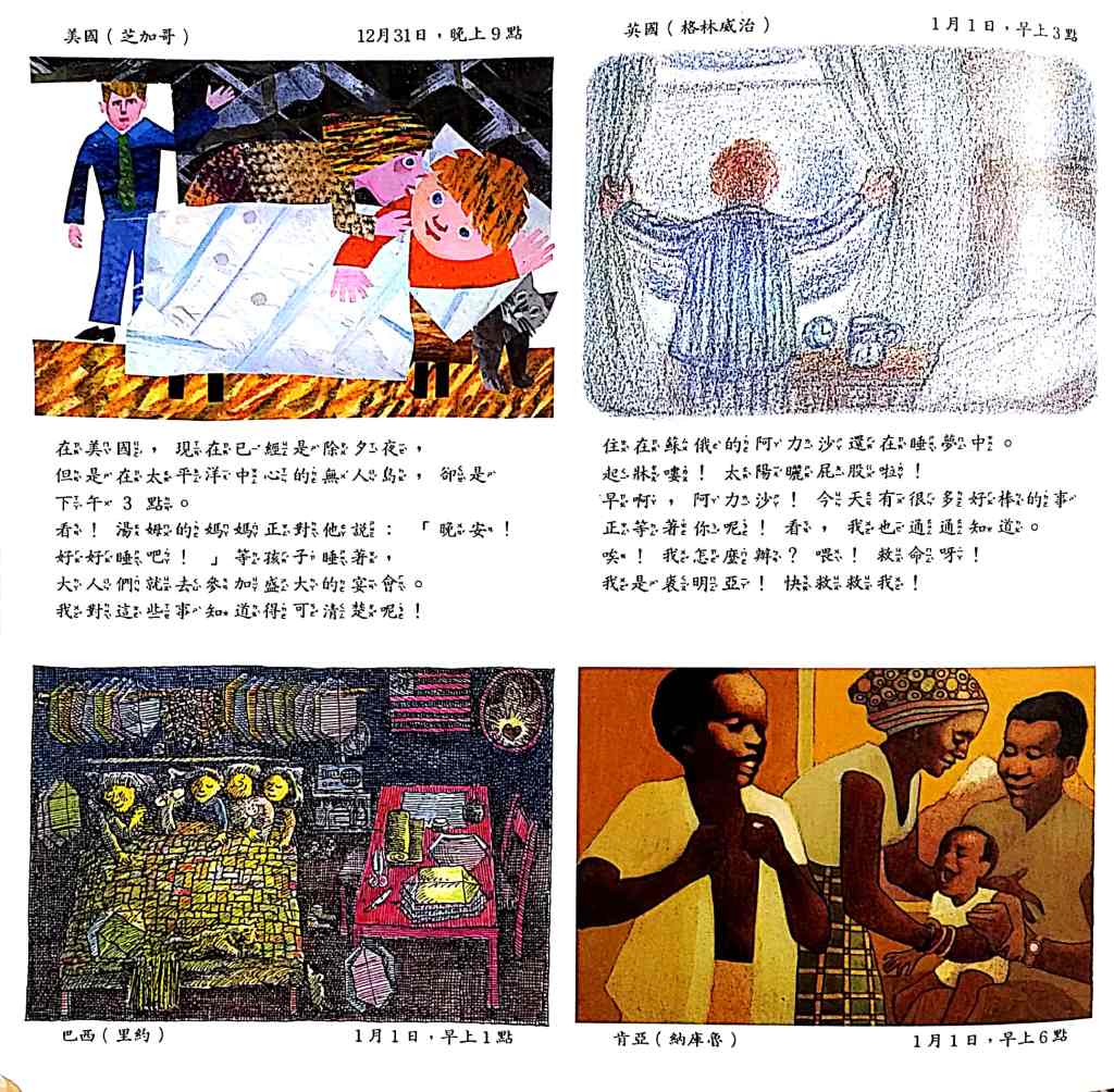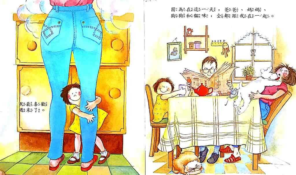 世界的一天 – I have to say that I really like the following book. Every spread give you 8 boxes of what people are doing in the day from “different” countries and the story continues on each page with the different countries. It shows diversity in culture and knowledge. This one is really just a classic and I would hunt this one down if I didn’t have it.
