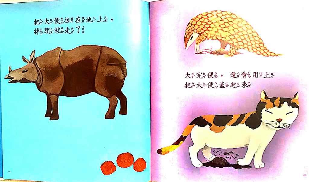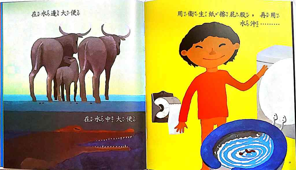 Please not the colors on the following book is actually very clear and solid on the actual book but the scanner software washed out the colors on 大家來大便: