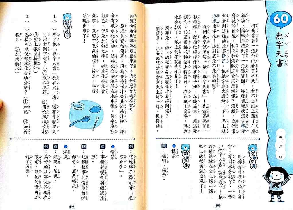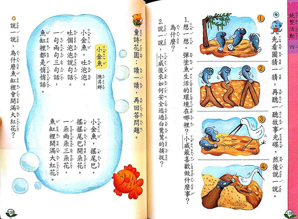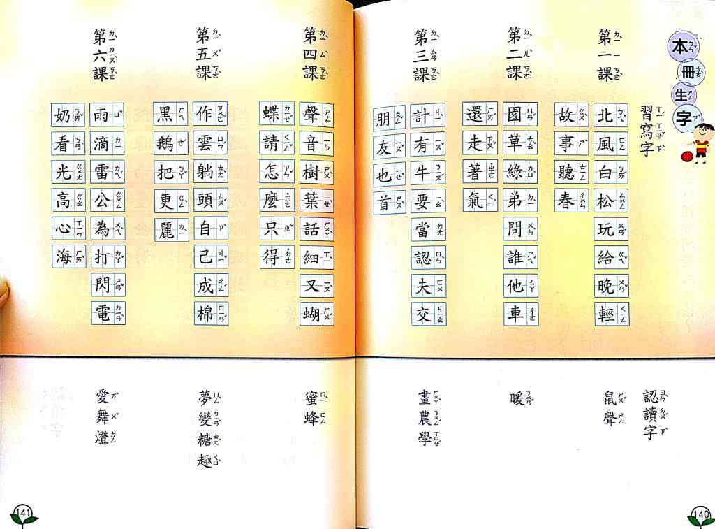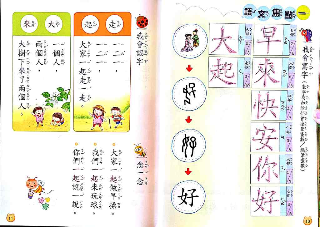 There’s a huge difference in the curriculum of the three above. The general gist is we are slow in the states. Taiwan comes in second and China takes the lead in terms of speed of teaching words and phrases and poems. In terms of comprehension though, I do find Taiwan’s extra reading materials (每日閱讀”悅”) to be very high level and do think that most kids in Taiwan do supplement more reading rather than the usual text they have in the classroom (which is extremely easy in the beginning of first grade). This takes their comprehension up pretty high when you count those extra materials. They may not read as many words as kids in China do but the exposure to more phrases and harder language is there due to the assistance of zhuyin.