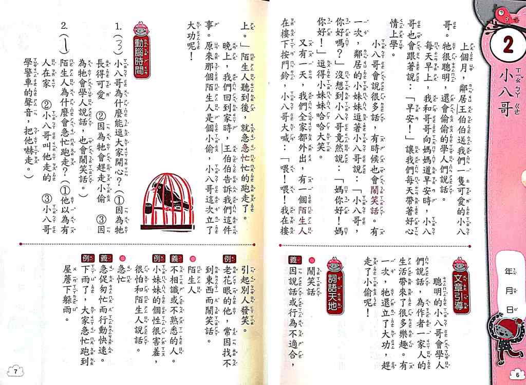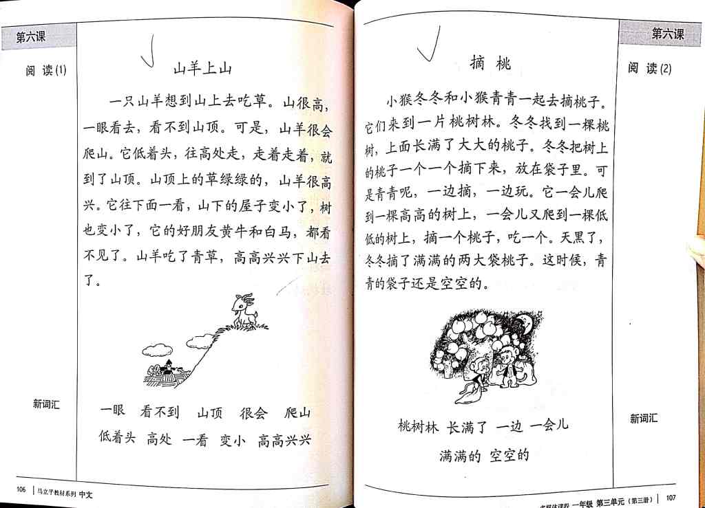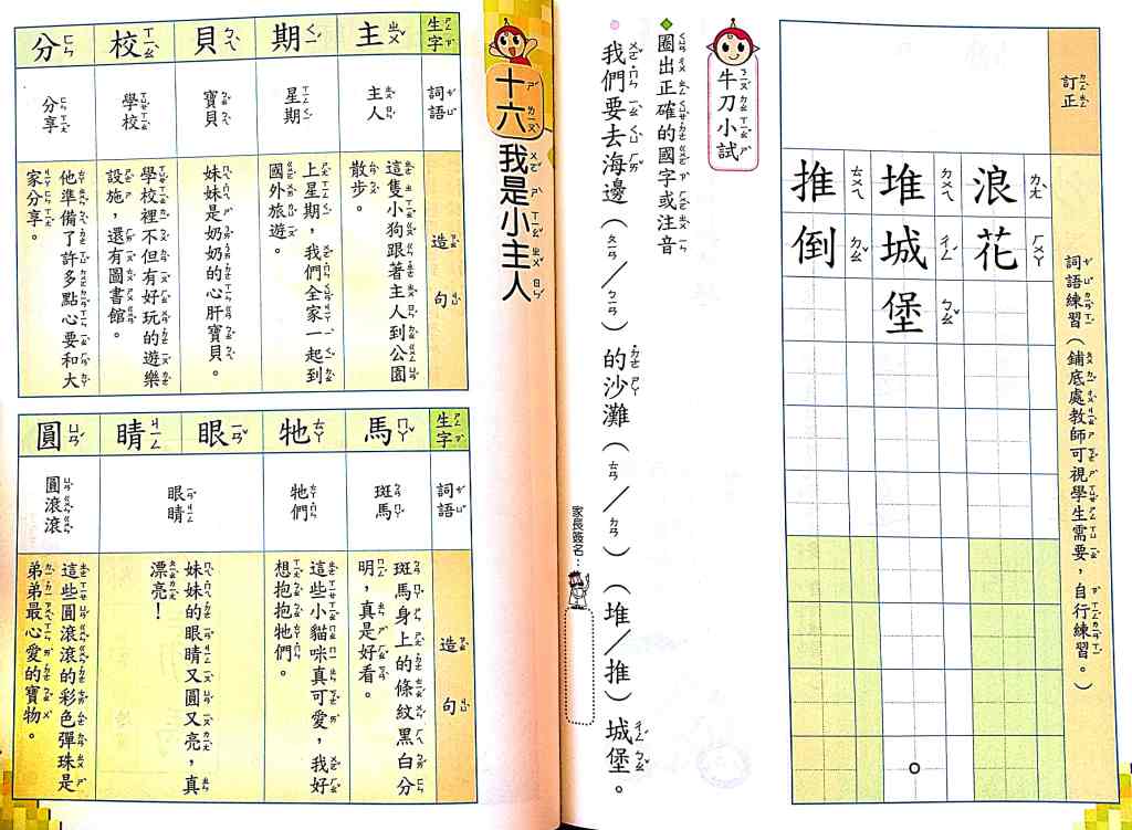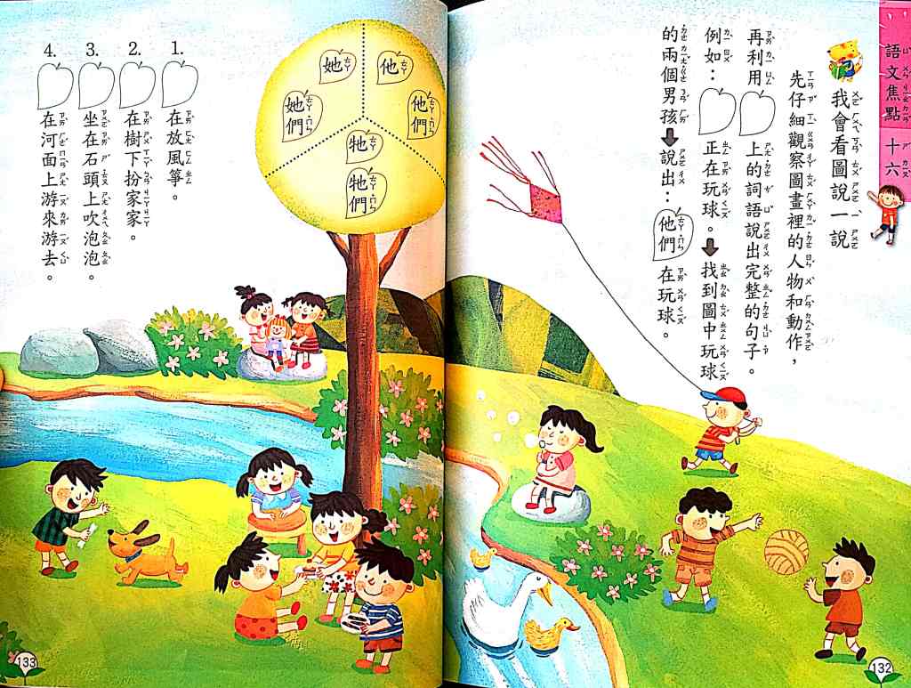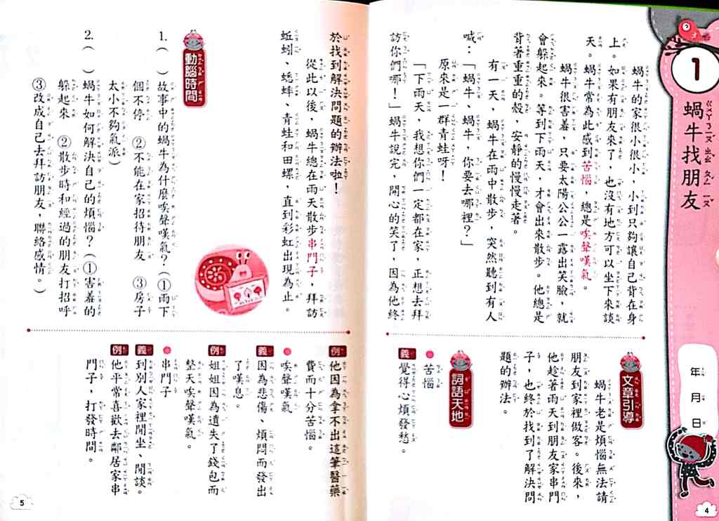 This is the LAST lesson of first grade in Taiwan. You will see that the lesson got longer, each week, they learned more and more words to write! Compared to supplemental reading, it’s still easy but I think they are really focused on the writing part so text can’t get too hard:
