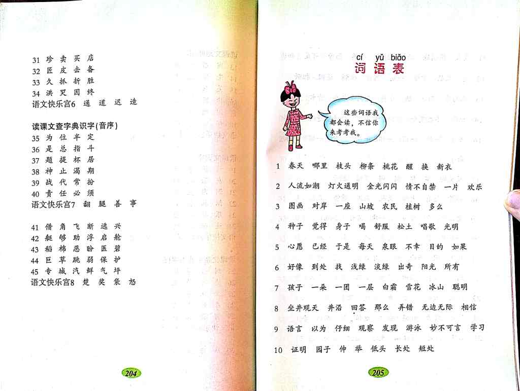 Here’s the end of the book where they review all the words and phrases they’ve learned: