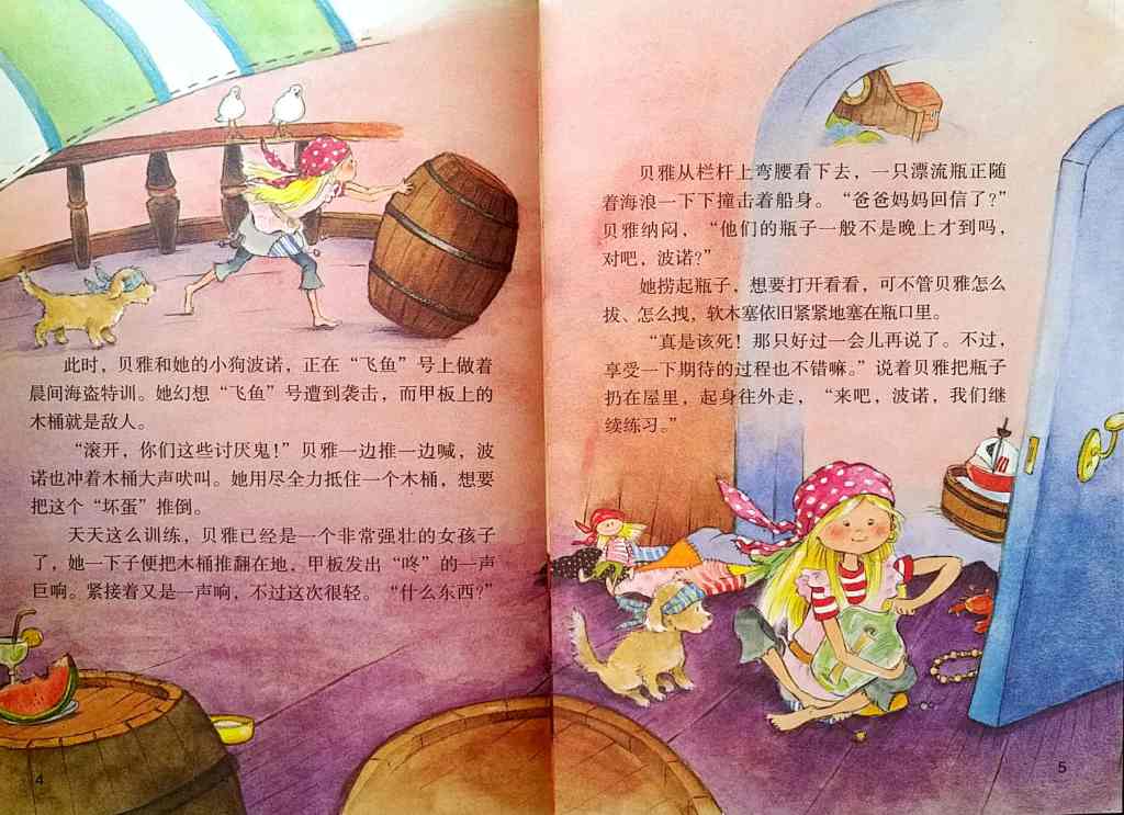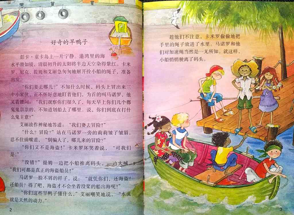 Each of these books has over 10,000 characters. However, each page is full color! Lots of characters but very fitting for a second grader in maturity or maybe a tad higher. It’s definitely a book after you have at least 800 characters under your belt to start reading. It’s about a girl pirate and her adventures. Language is easy. Written from an Austrian mixed Greek author. Very cute series of three books. Sample below.