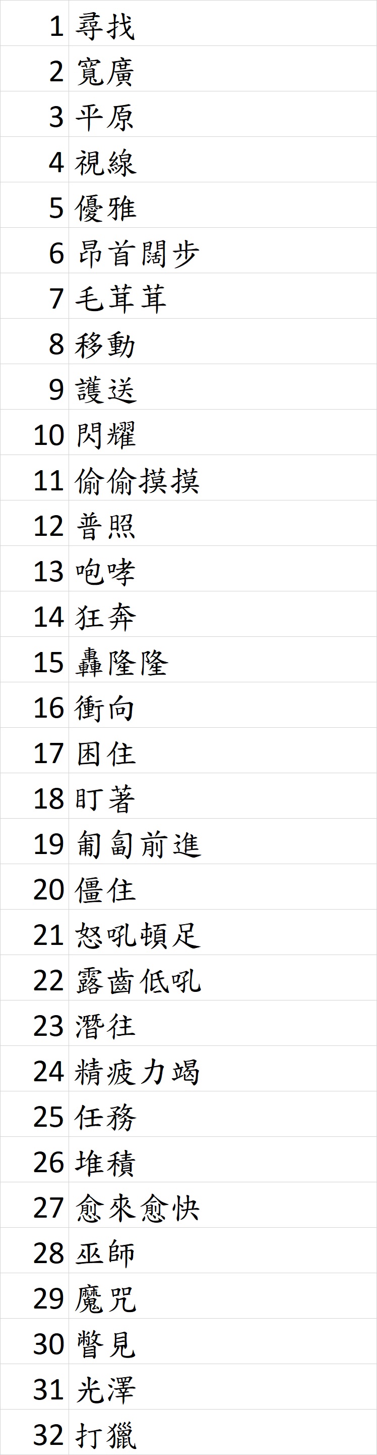 Being a crazy mom (yes, I know who you are saying this), I went through the book and picked out some phrases or vocab that I thought she didn’t recognize the characters for OR phrases she hasn’t heard of OR idioms. Here’s a sample list below:
