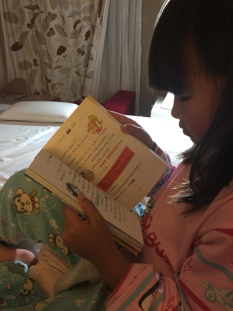 My daughter is six and a half right now. She knows how to read traditional and simplified characters. She knows zhuyin as well as pinyin but she doesn’t need phonetic assistance anymore due to her love of reading comics. She has perfect pronunciation and speaks Chinese to Chinese fluently to a point where people may think she may not know English! You may think I had some magical formula to share but the truth is, there’s no magic in developing a child who reads fluently in Chinese at a young age. She’s never been to Chinese school and never did the most common 500 characters everyone has been training. We don’t have flashcards at home either so I don’t frequently share how we came about on our journey to read. The reason being I don’t feel like I did anything special. If you really had to boil it down to one thing, then it’s the same thing the crazy tiger moms in the Motherly Notes Facebook Group has done: crazily buy enormously large amount of books and do an incessant amount of reading!