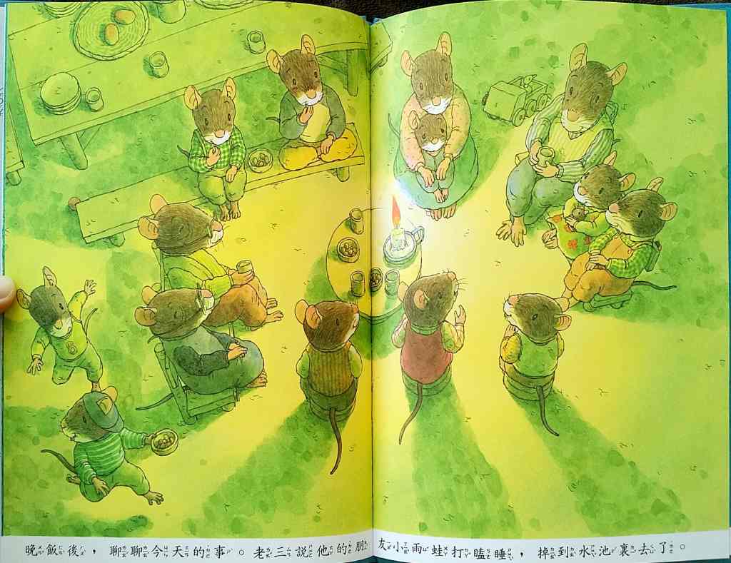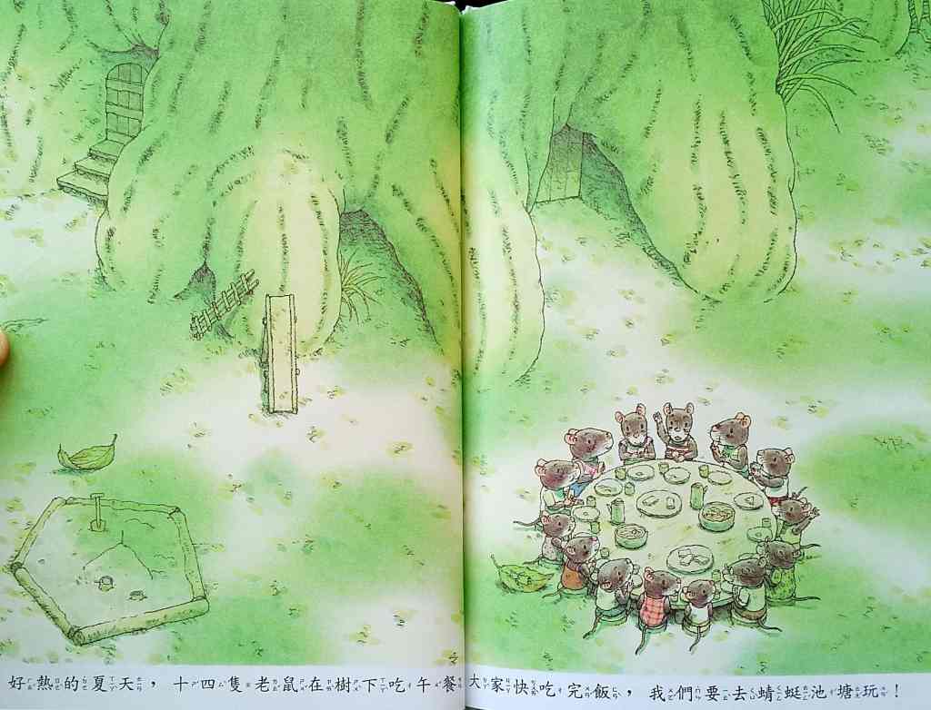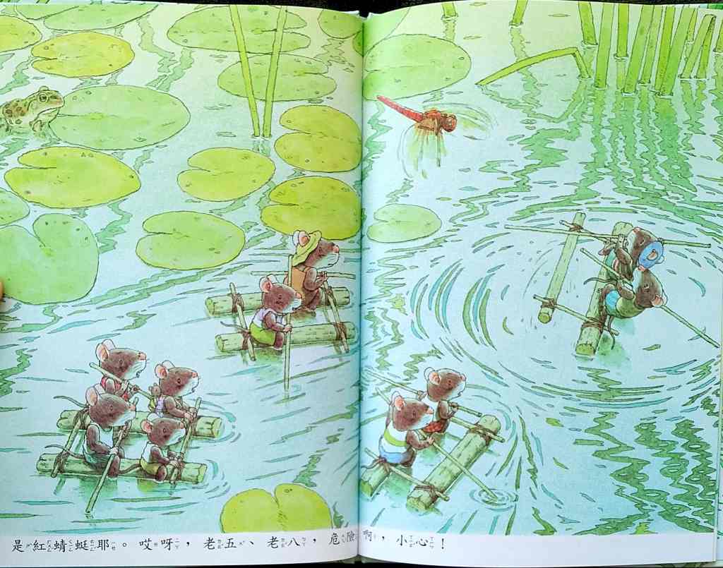「14隻老鼠遊池塘」── At the Pond 十隻小老鼠同遊蜻蜓池塘,共享歡樂的夏日時光。