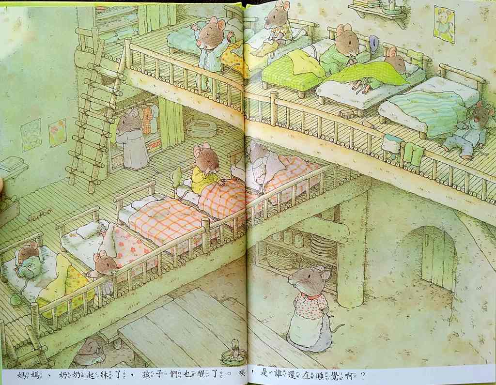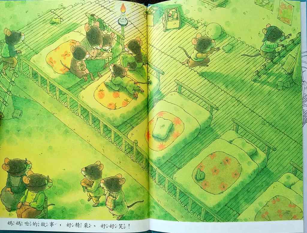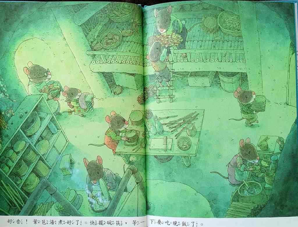 「14隻老鼠晚安」── Good Night 黃昏後,洗個熱水澡,家族共進晚餐,在溫馨的氣氛中進入甜美的夢鄉。