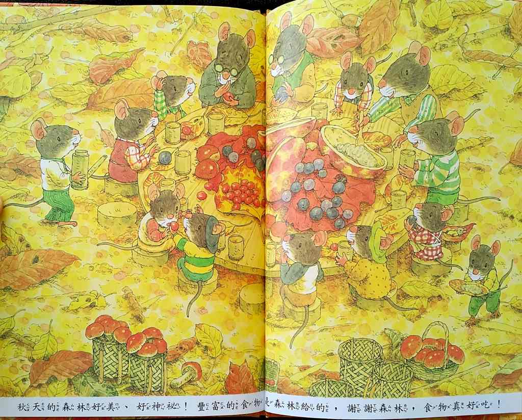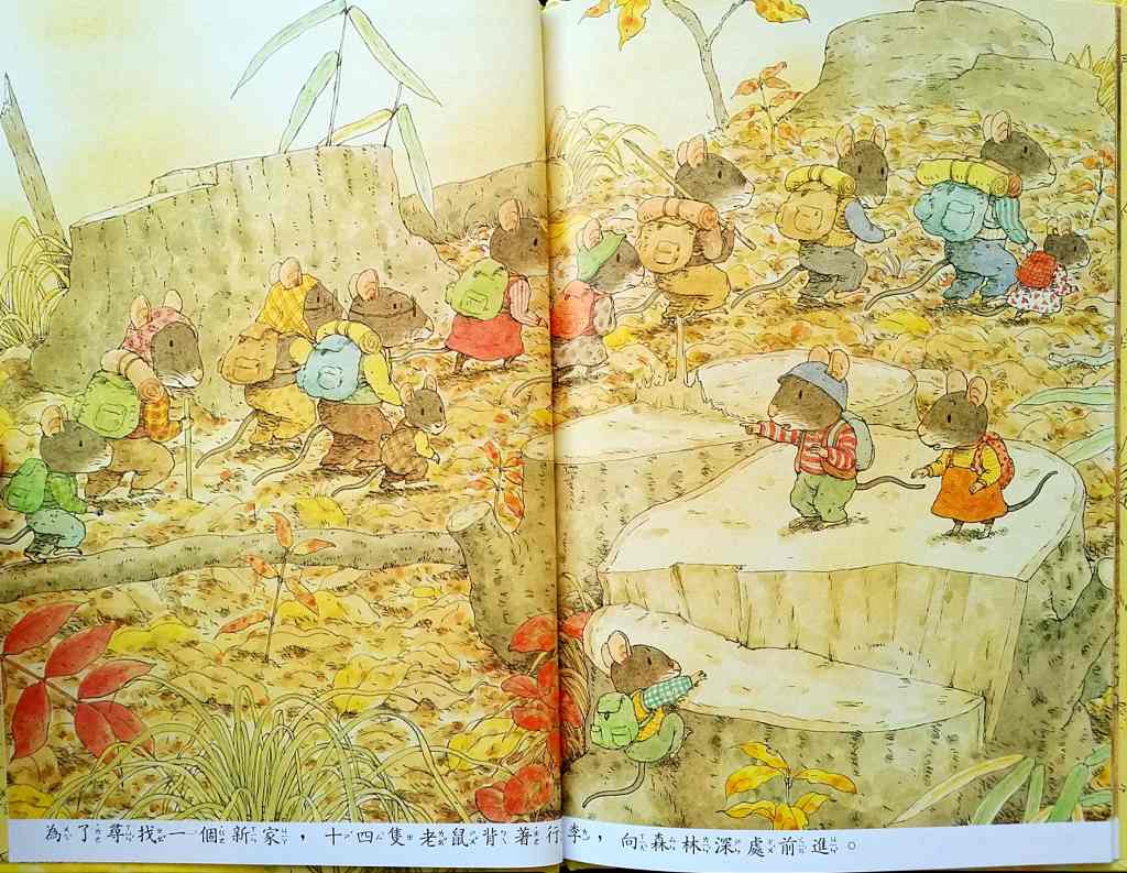 「14隻老鼠捉迷藏」── Hide and Seek 家族在秋天的森裡頭玩捉迷藏,並尋找食物。