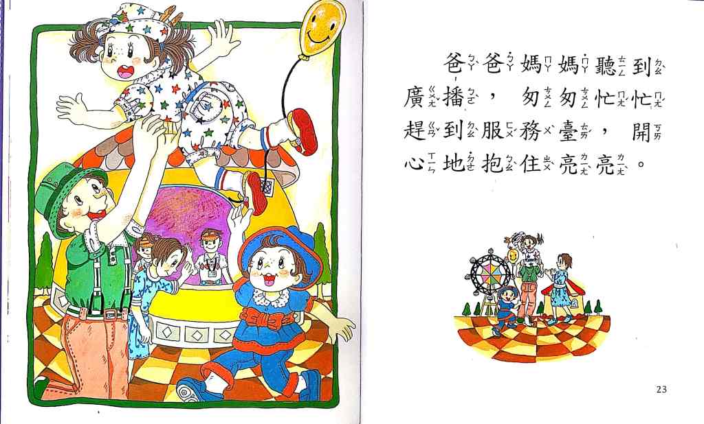 1. Develops Confidence – It’s great for developing confidence for beginning readers since it’s a fast read and the words are big so they don’t seem intimidating. The zhuyin (phonetic assistance) is clear, large, and easy to read if you’re learning zhuyin. My four year old was in sheer awe of the size of the font.