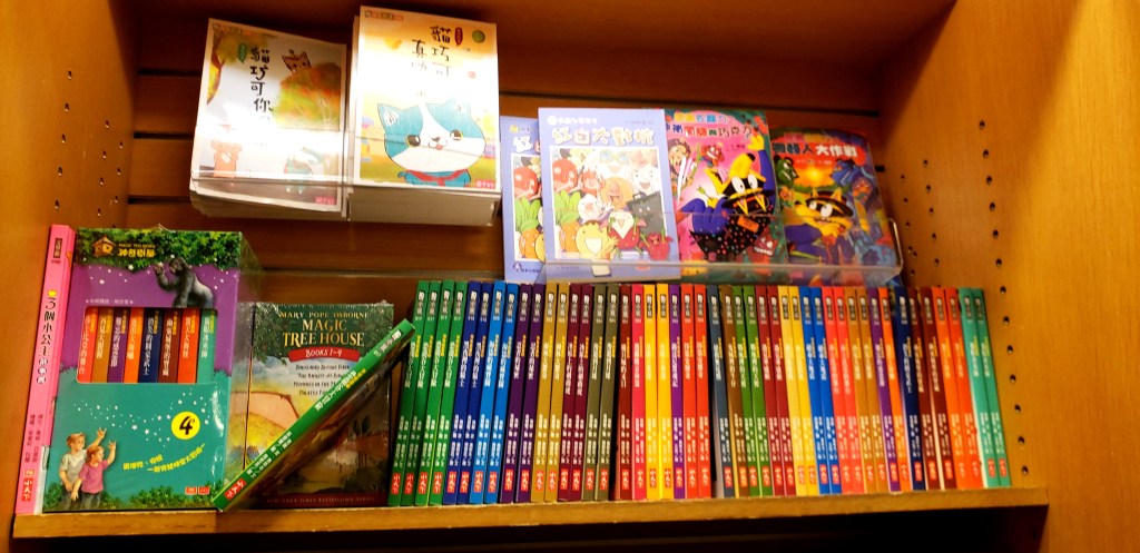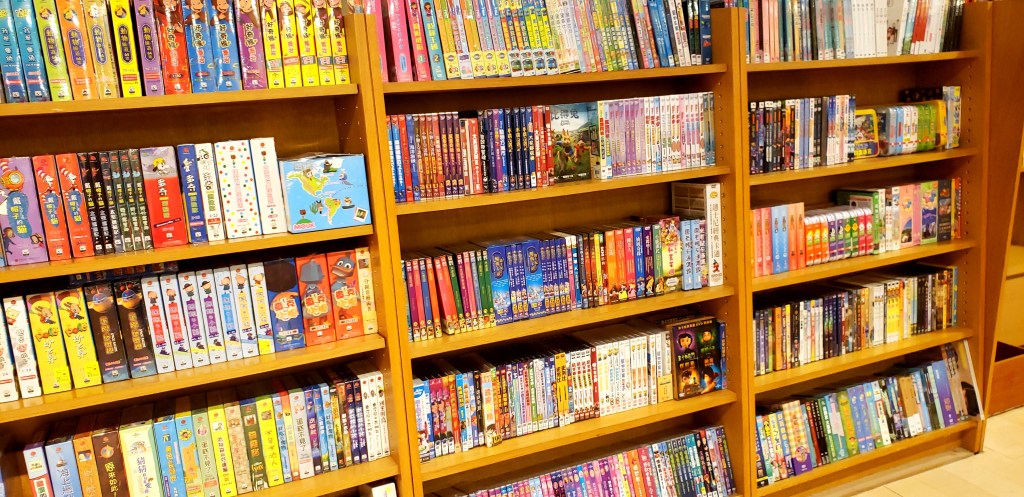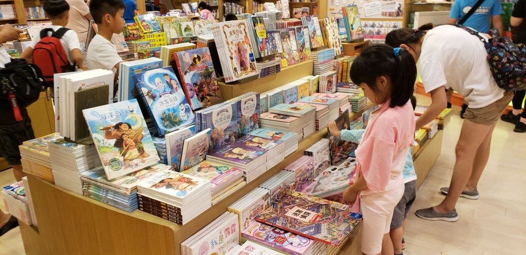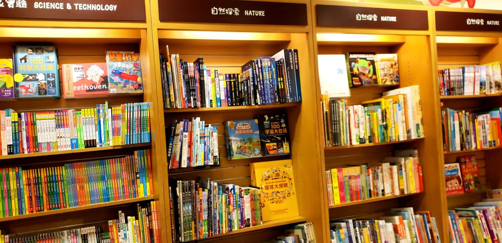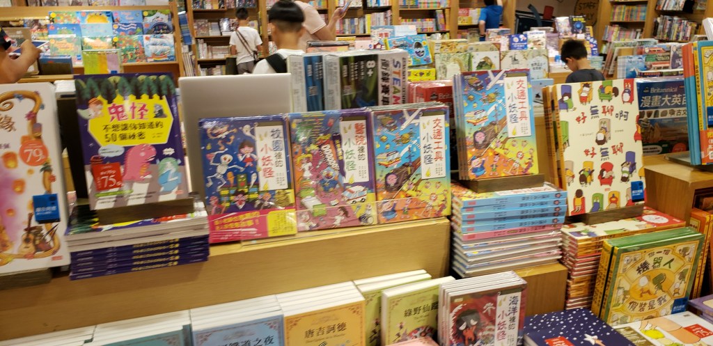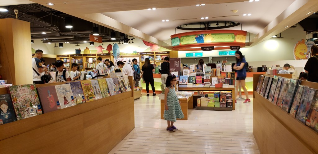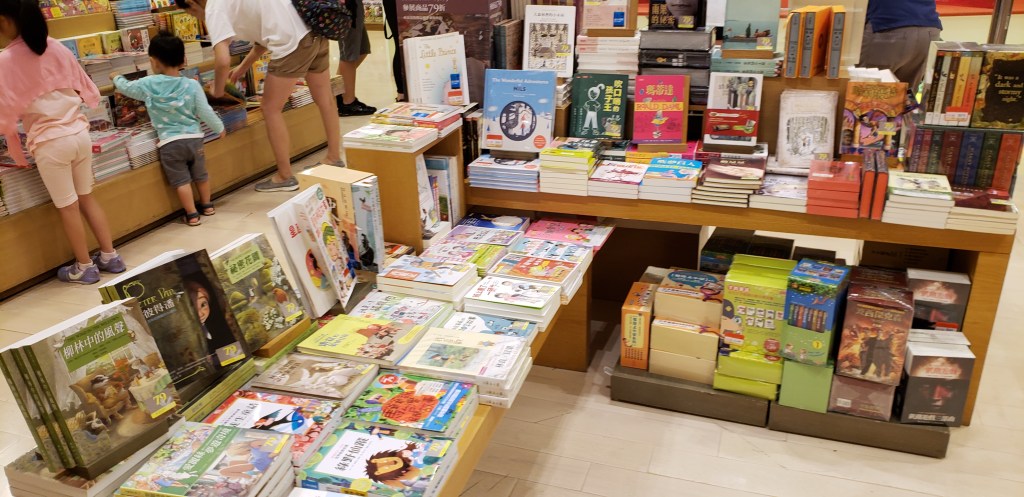 We went to the largest bookstore in Taipei today. It’s more like a department store/ bookstore. Absolutely gorgeous… I was so excited to visit the kid’s section only to find their chapter books… were not complete. I took some photos nonetheless. This place huge! It’s a whole building of books from adult to baby but also many many products are sold inside and there are a bunch of food options too. If you wanted to, you could spend a whole day here! The other Eslite I went to was 1/20 of this size. I couldn’t take photos of everything but I did take some photos of some of the adult items and many of the children’s items down below.