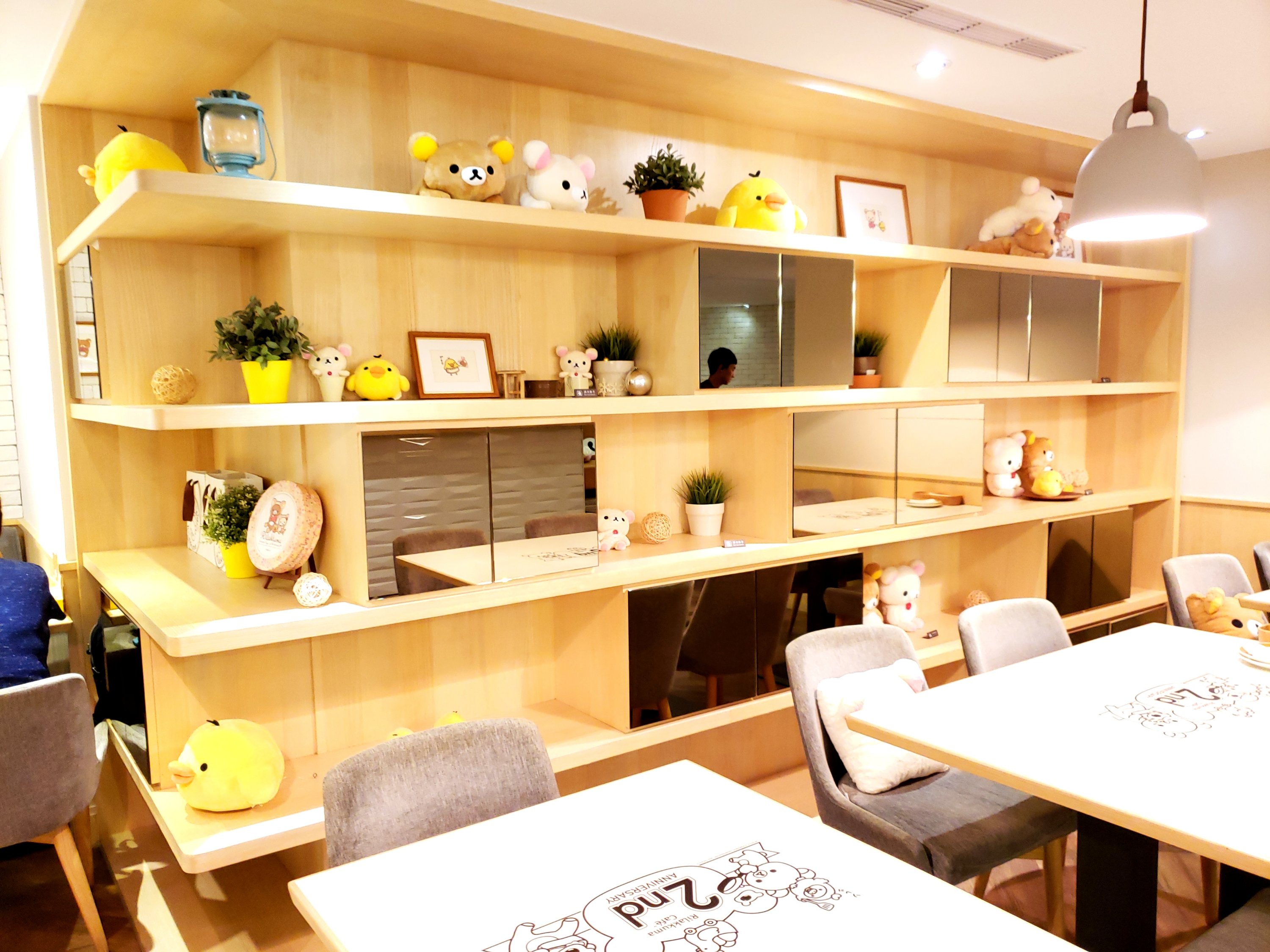 They have stuff for sale in there. Toddler plates and bowls are given and are shown below. Their drinks and desserts are much better tasting than their meal but their meal wasn’t bad. It was very acceptable. You can pre purchase items when you book the cafe. If you have a birthday, they give you a special bear pillow to hug while you’re there… there’s a minimum of 200 TWD spending minimum for each guest over 6 years of age…