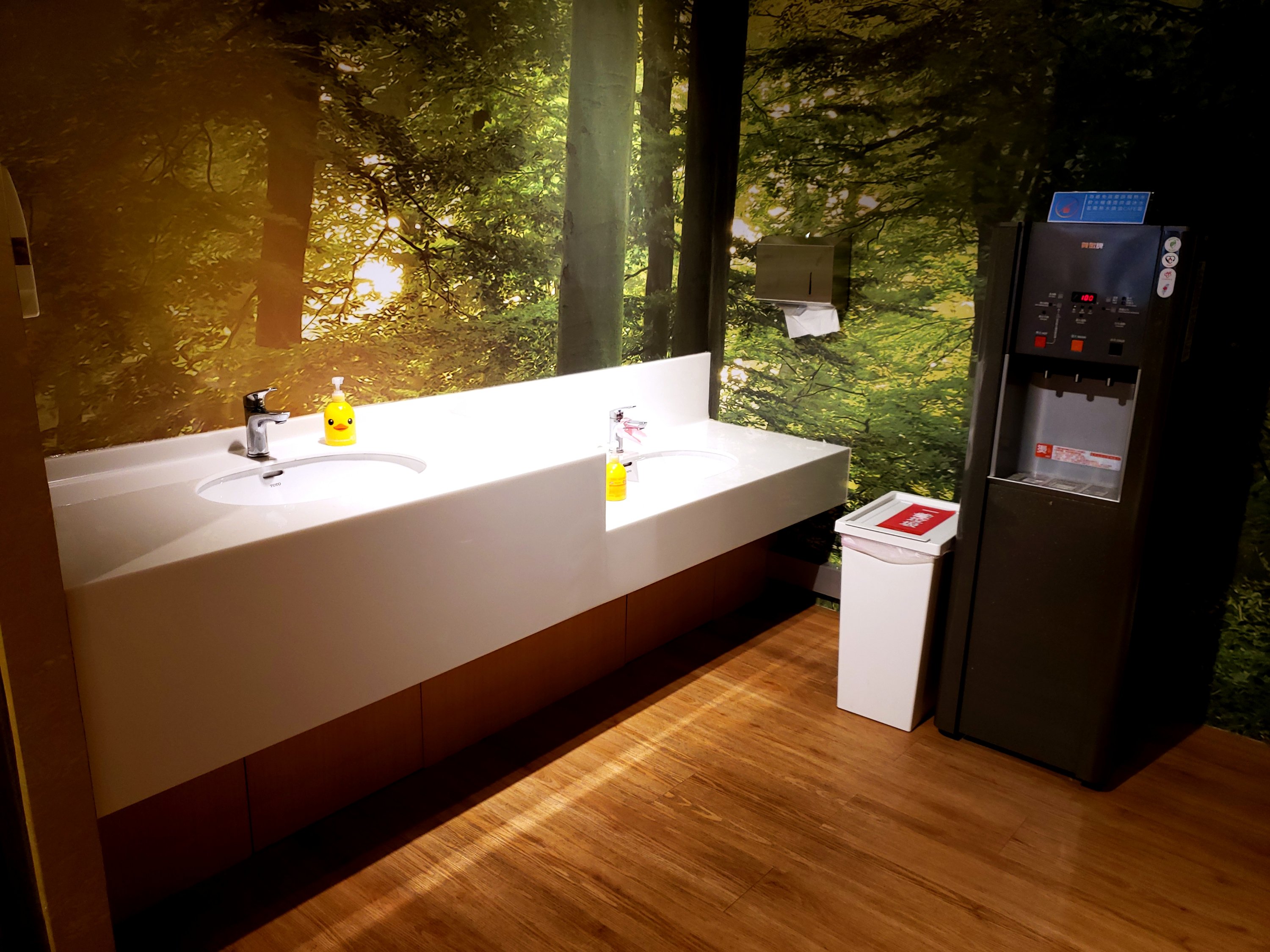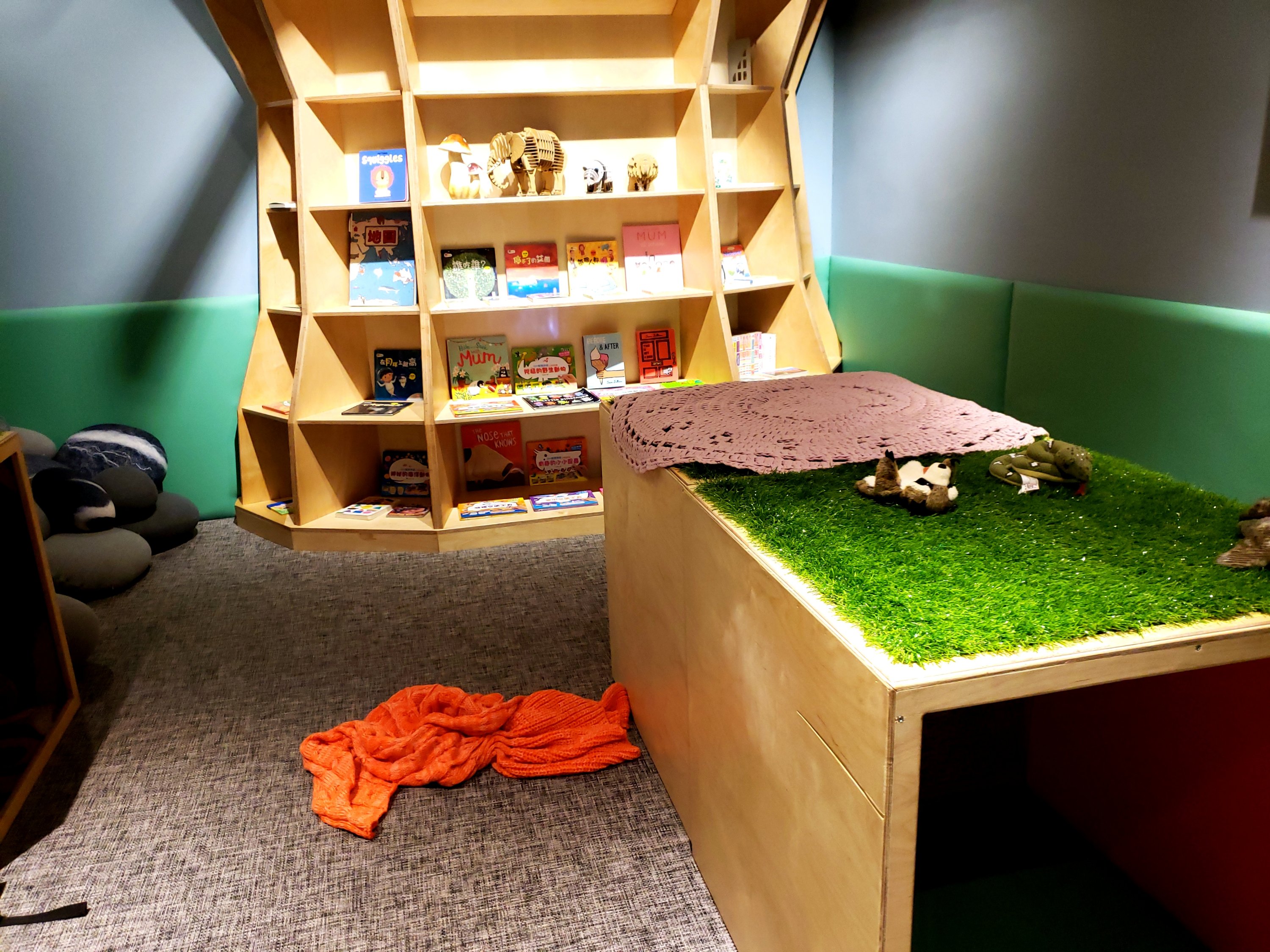 There’s a baby craw space with little baby toys and safe area when they’re waiting for the older sibling to finish their play. There’s kid friendly sinks everywhere to wash their hands. Everywhere you enter they spray your hands and measure your temperature to make sure you’re not sick when you enter.