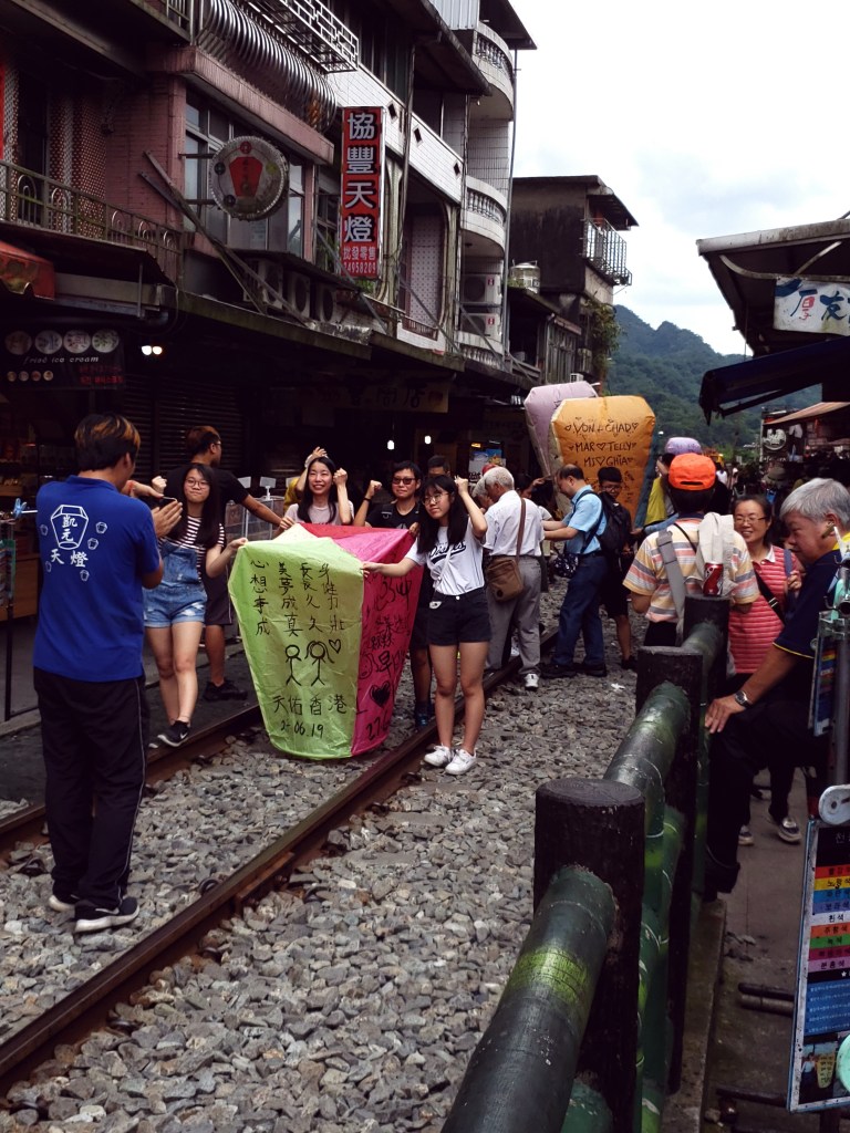 This is the famous place where you can light up paper lanterns and let them float into the sky like the Taiwan idol dramas. The strip of shopping is about only half a mile long. You will find lantern shops all along the shopping strip with similar prices. $150 for one color and $200 for multi color. Each combo means different things like for good health, fortune, love, career, grades, etc. You write a wish on your lantern and light it up along the train path. This is a REAL train path so please watch out. When the train comes… move out of the way….