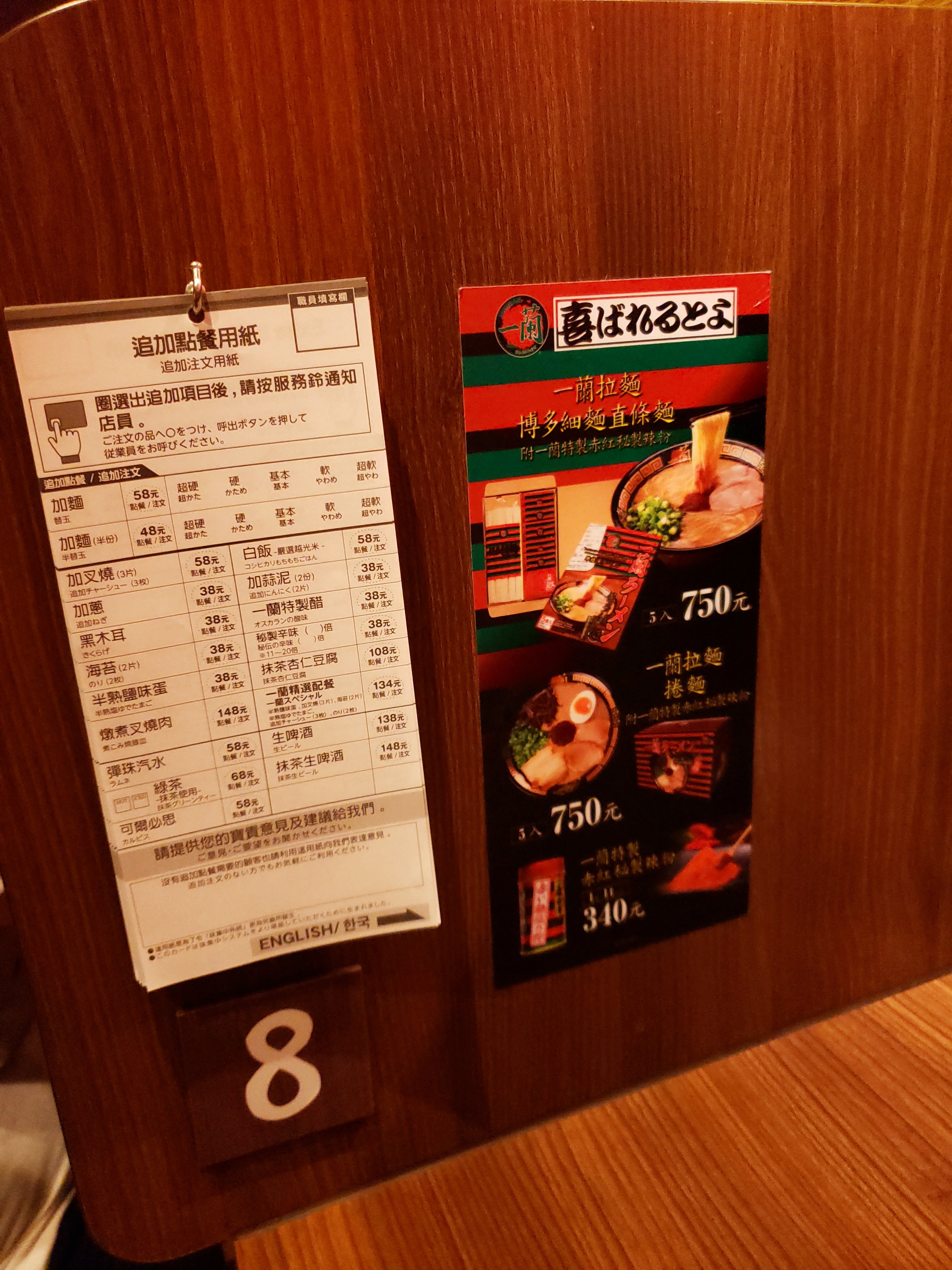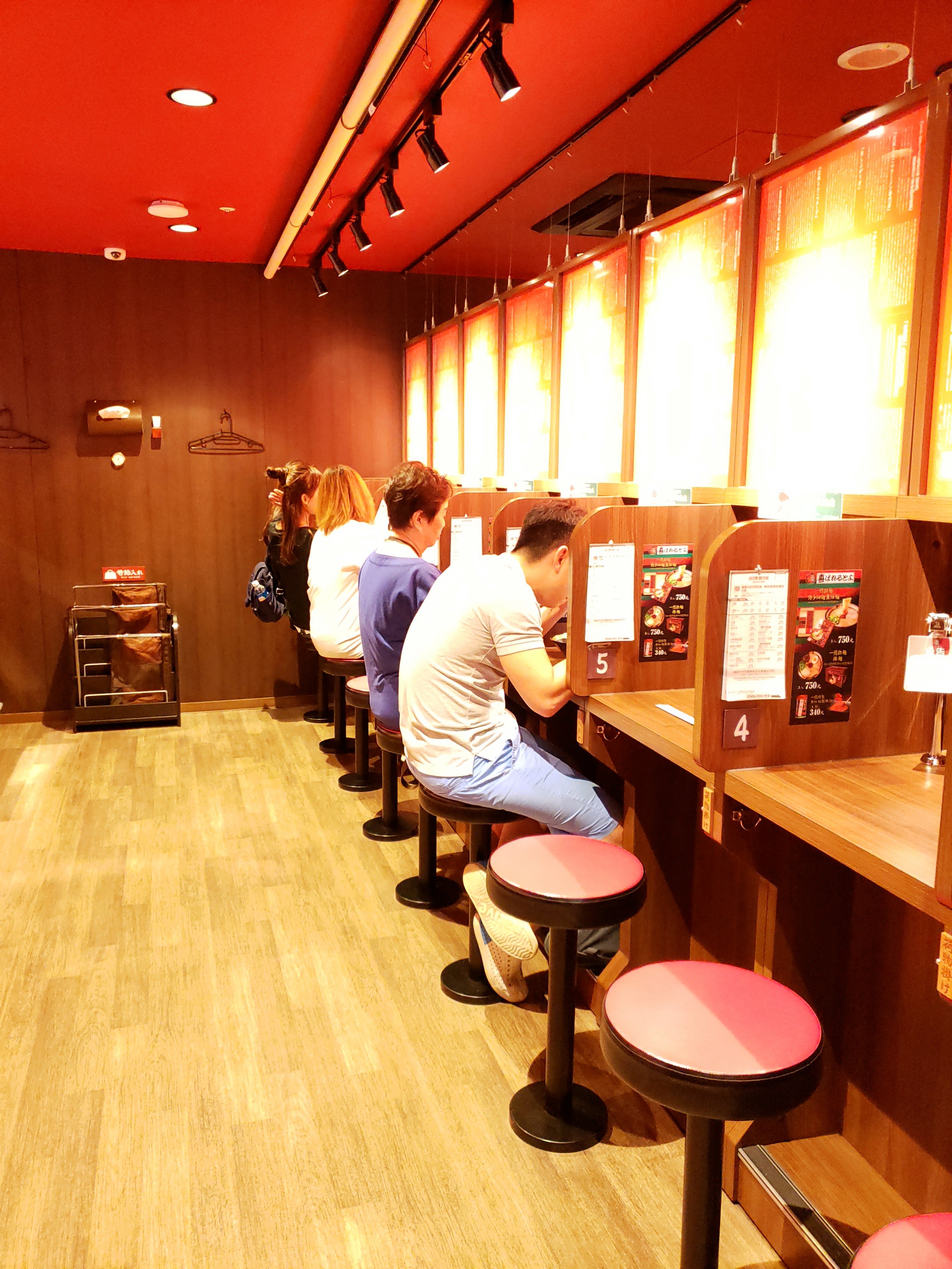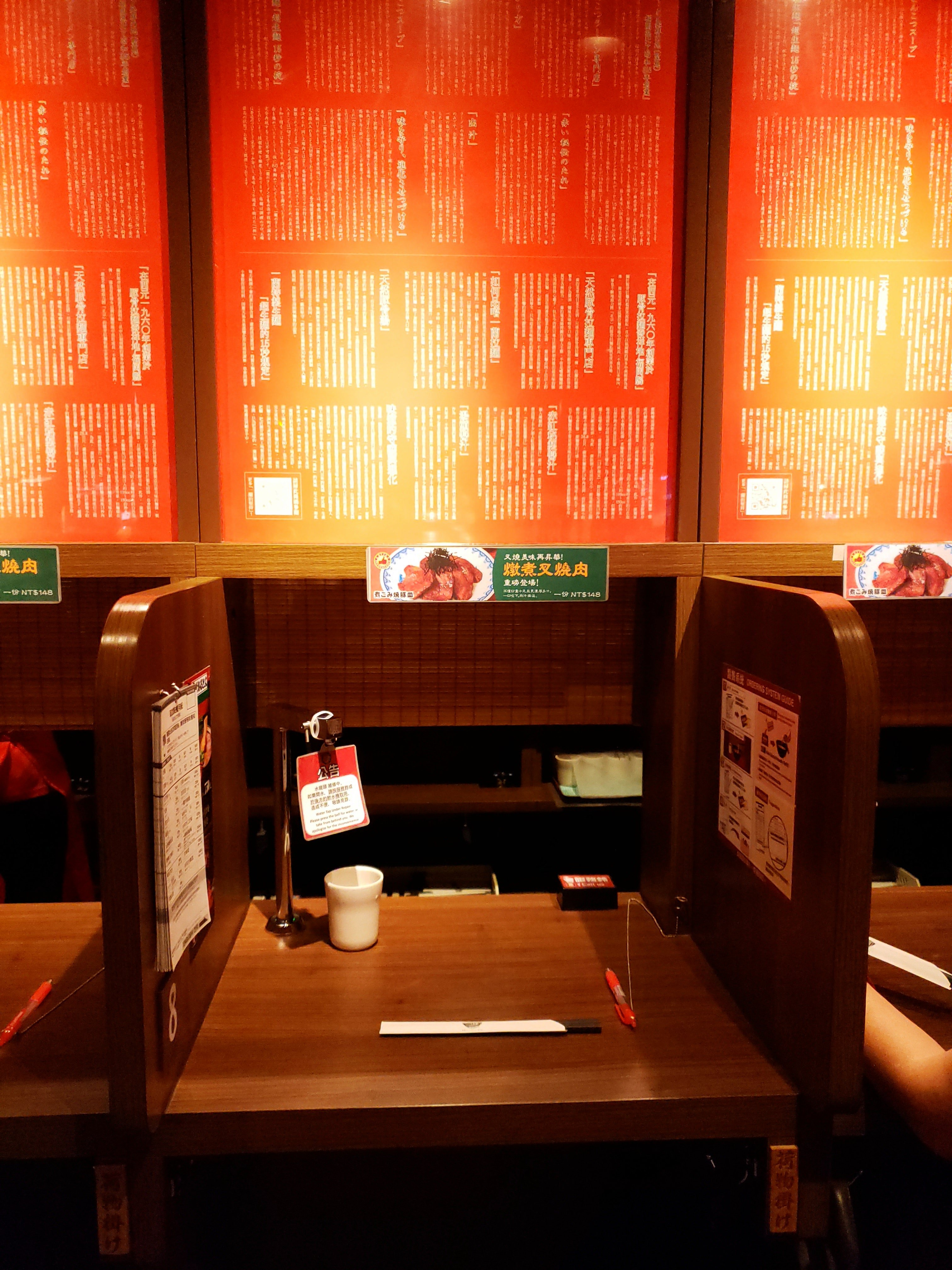 I ordered 10 times the spicy and then ordered slightly harder noodles which I thought was smart. The noodles get softer as you eat and then it was perfect by the time I was eating it (since I took about a minute to take some pictures). Everyone sits in a stand as if you’re in the streets of Japan. There’s a drape that pulls down in front of you when you sit down so you actually don’t see your server. I never got to see my server.