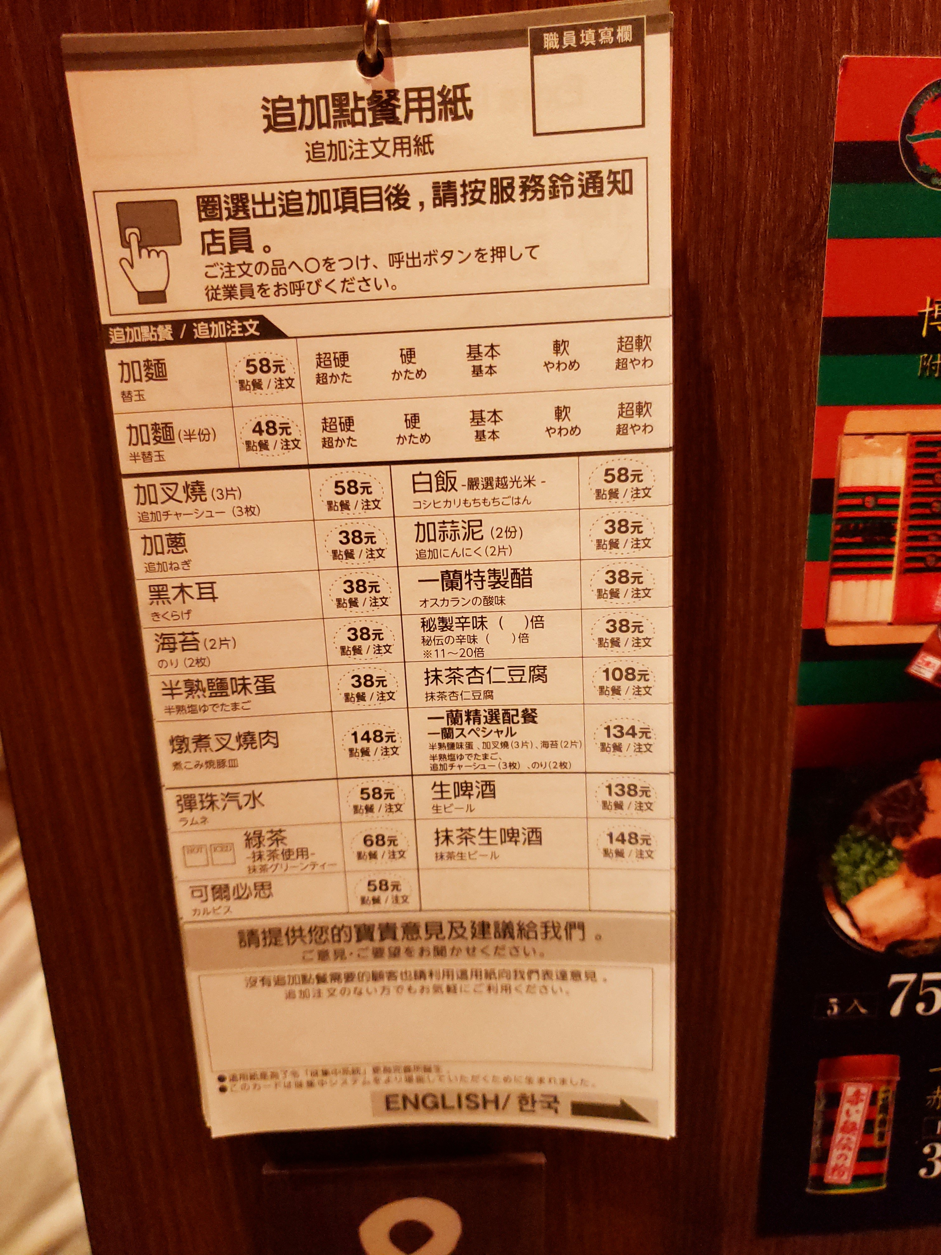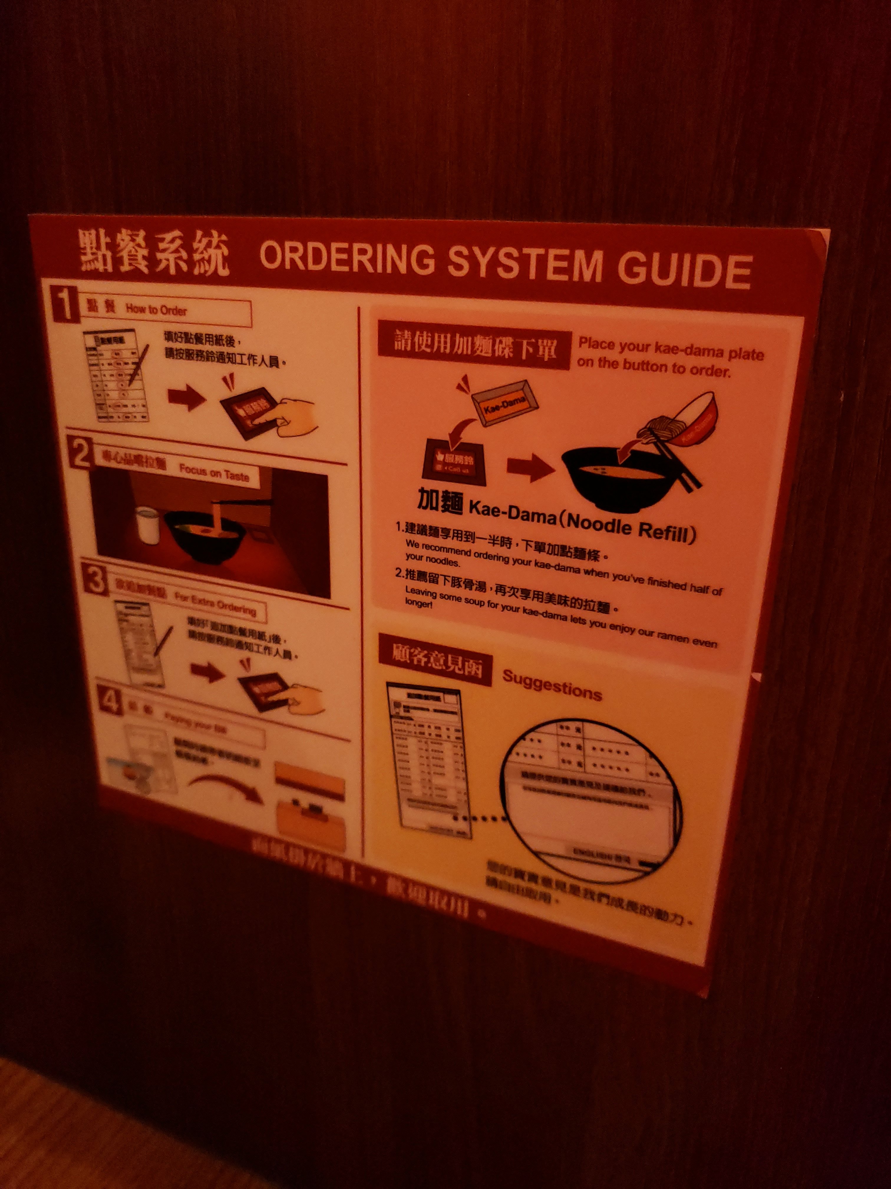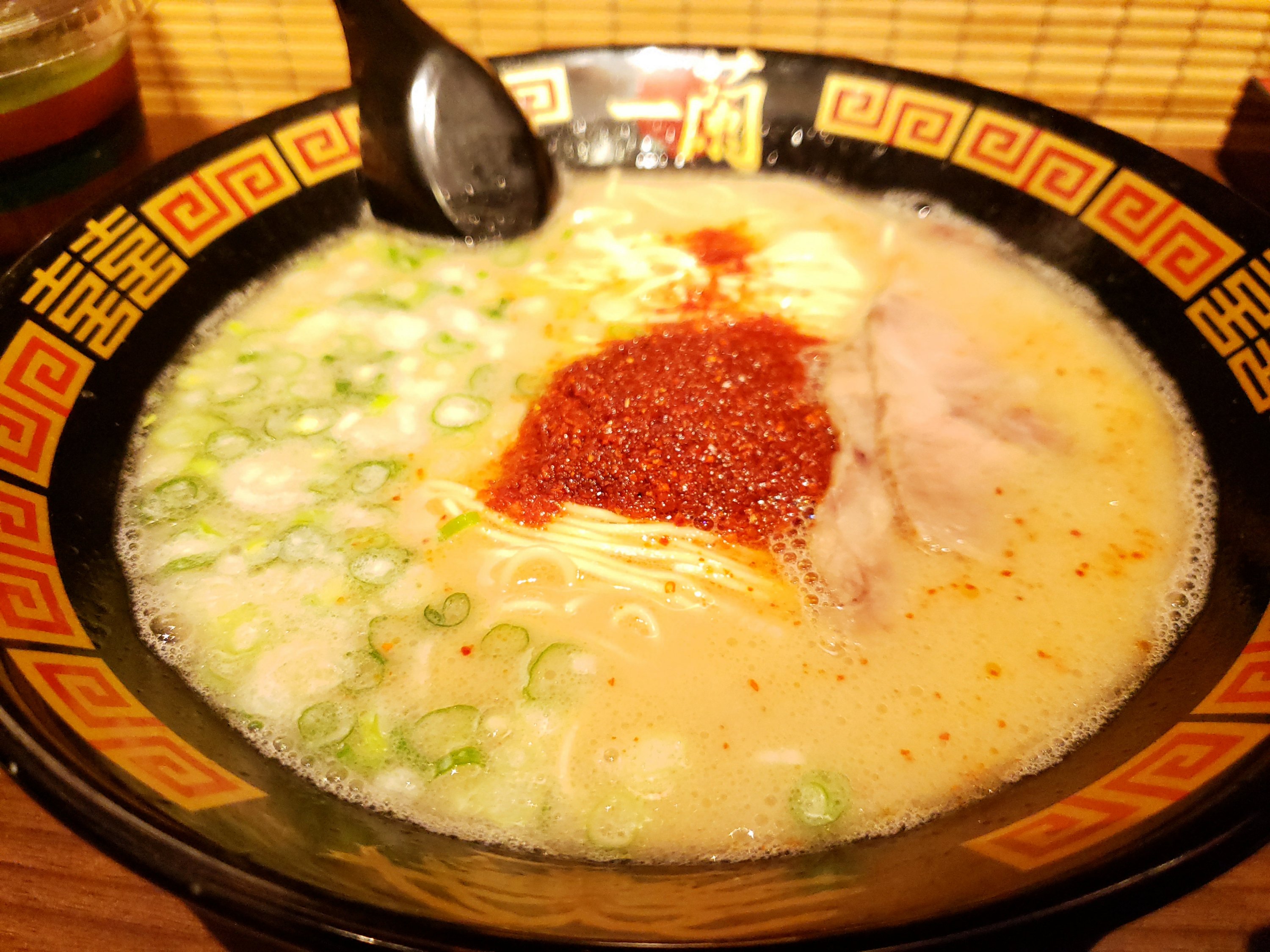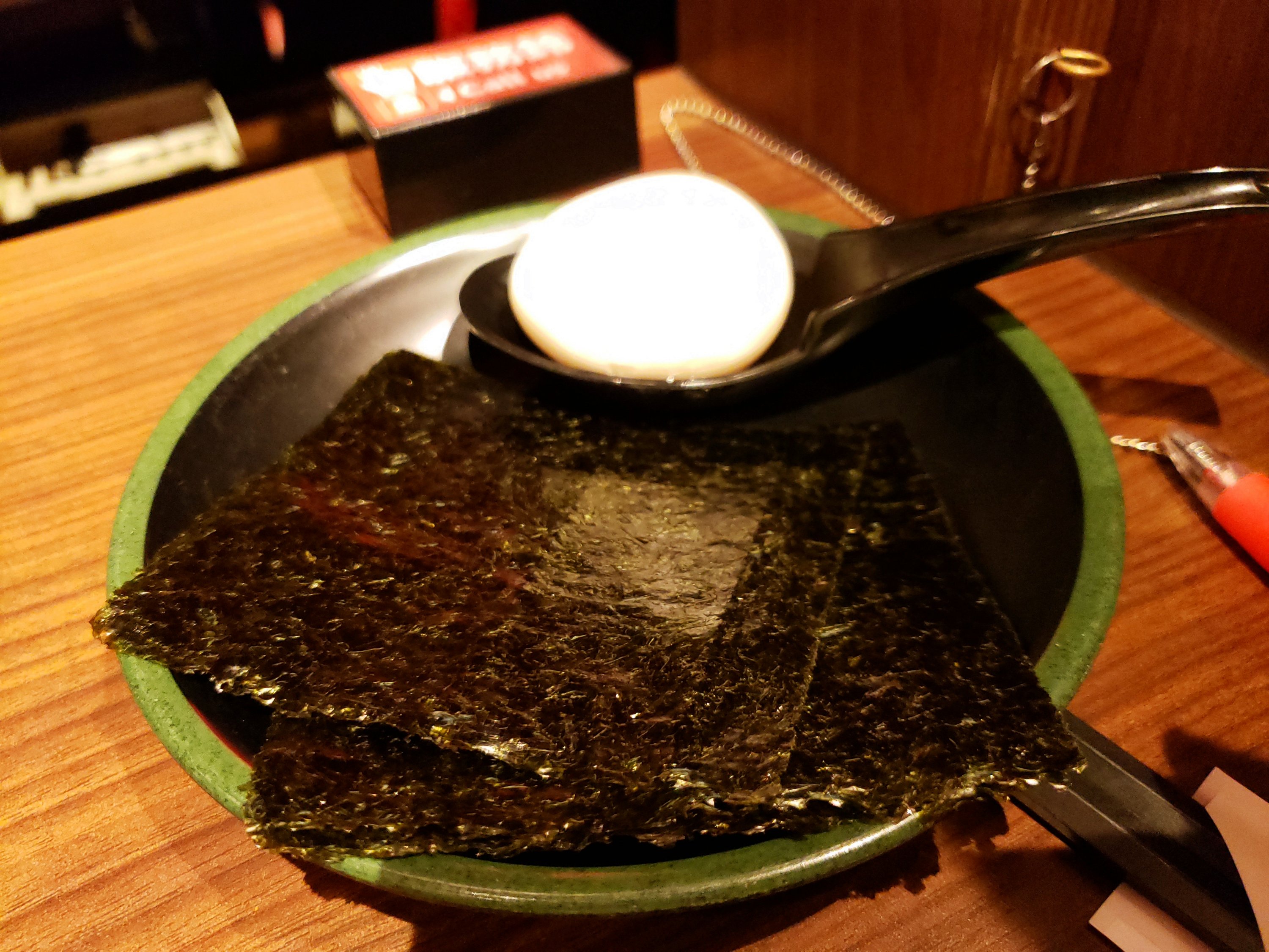 I ordered 10 times the spicy and then ordered slightly harder noodles which I thought was smart. The noodles get softer as you eat and then it was perfect by the time I was eating it (since I took about a minute to take some pictures). Everyone sits in a stand as if you’re in the streets of Japan. There’s a drape that pulls down in front of you when you sit down so you actually don’t see your server. I never got to see my server.