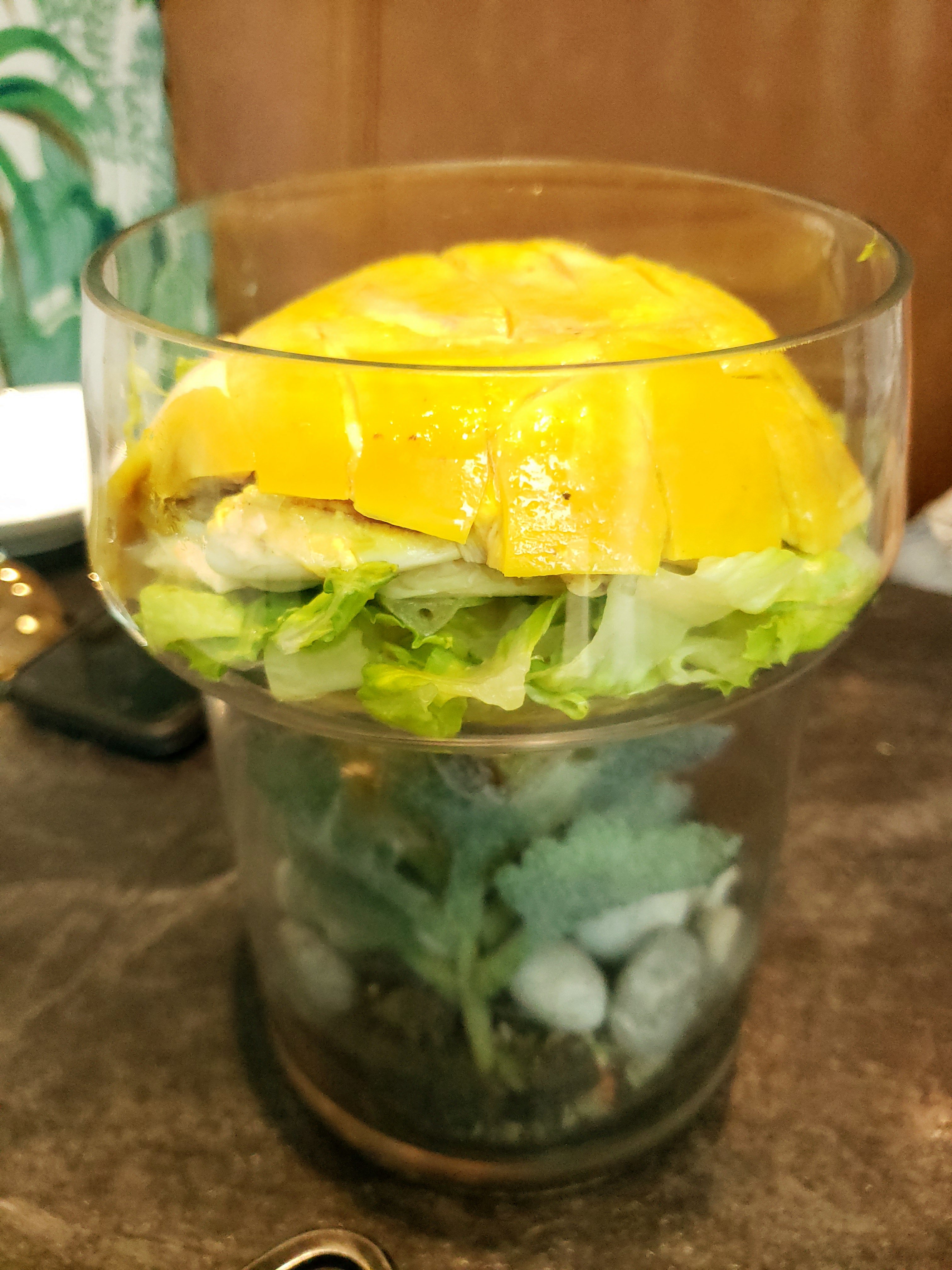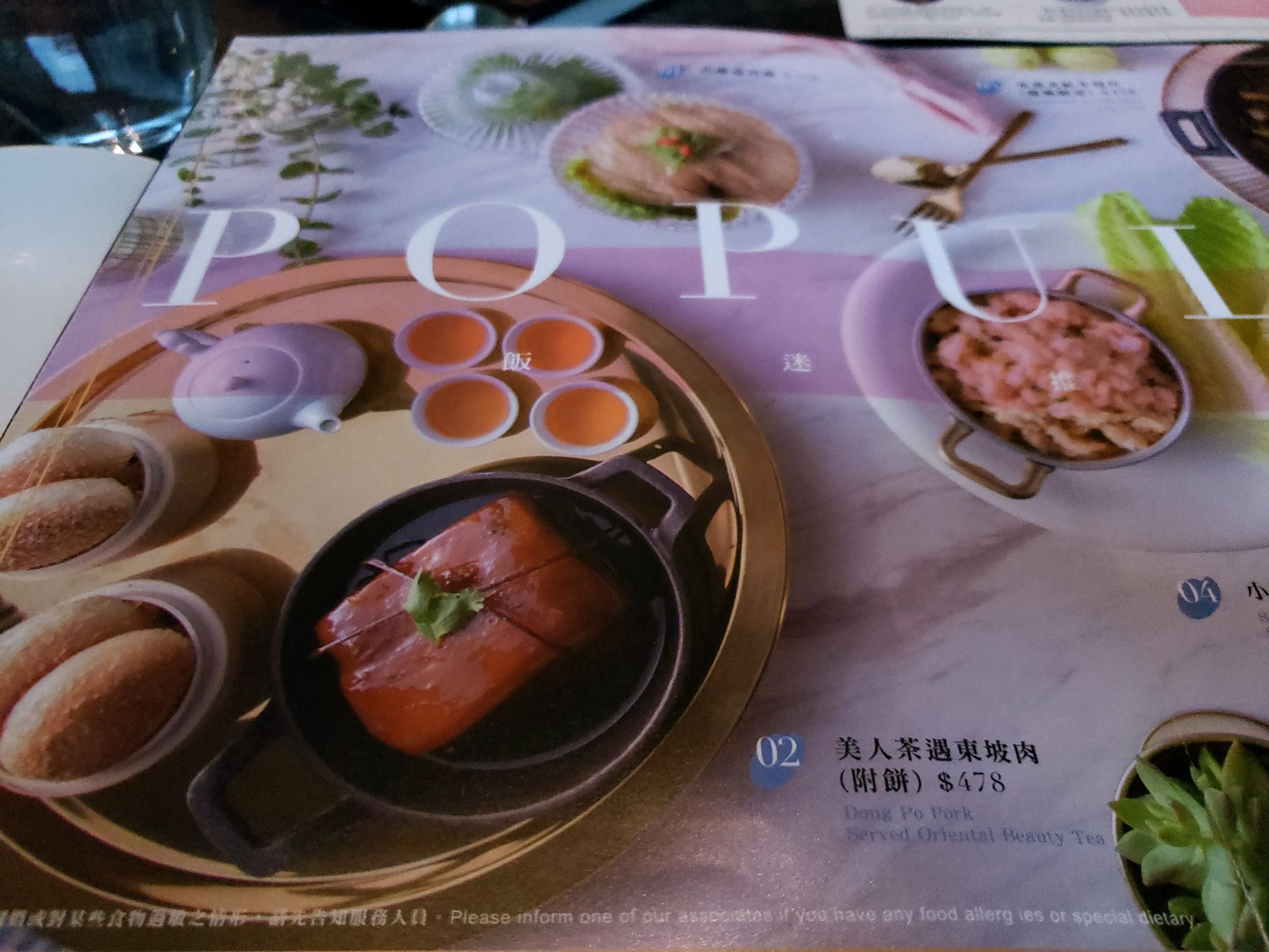 This is a trendy style Chinese restaurant and it’s quite tasty! You can find many traditional dishes done nicely. My favorite is the pork belly (東坡肉) and Shanghai Bok Choi Rice (上海菜飯). The meat was tender but not oily. The sauce was just right. The rice was nice and bouncy and just the right flavor. Bok choy was not overcooked and mixed in with the rice nicely. The spicy pot of beef is only specific to the 信義 Xinyi location and the taste was good but not as special as the other two dishes. The chicken was good but I was upset they didn’t present it with little goldfish underneath as a serving decor they had in the menu!!! hahaha… j/k