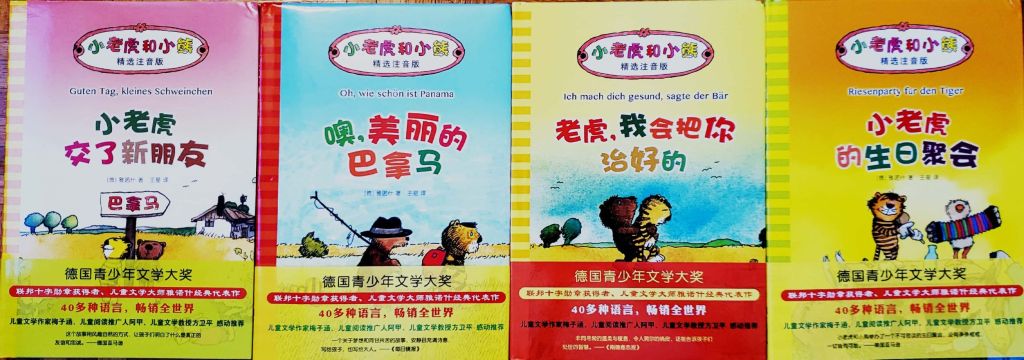 This is a set to read to your toddlers or have the early readers go at it themselves. It has pinyin and also has great warm stories about a bear and a tiger and their adventures together. The pages are thick and glossy. It was translated from a German set and I think it’s a great set to have for all ages actually. There are seven books in the set but somehow I just ended up with a four book set, sigh! LOL…