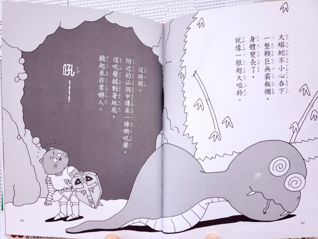 - It forces you to read without zhuyin since about 15-20% of the text in there is done without zhuyin. I think this was very intentional. You get the child hooked in the story and write some stuff without zhuyin and they’ll try to figure out what it wrote and unconsciously, you’ll be learning more characters.