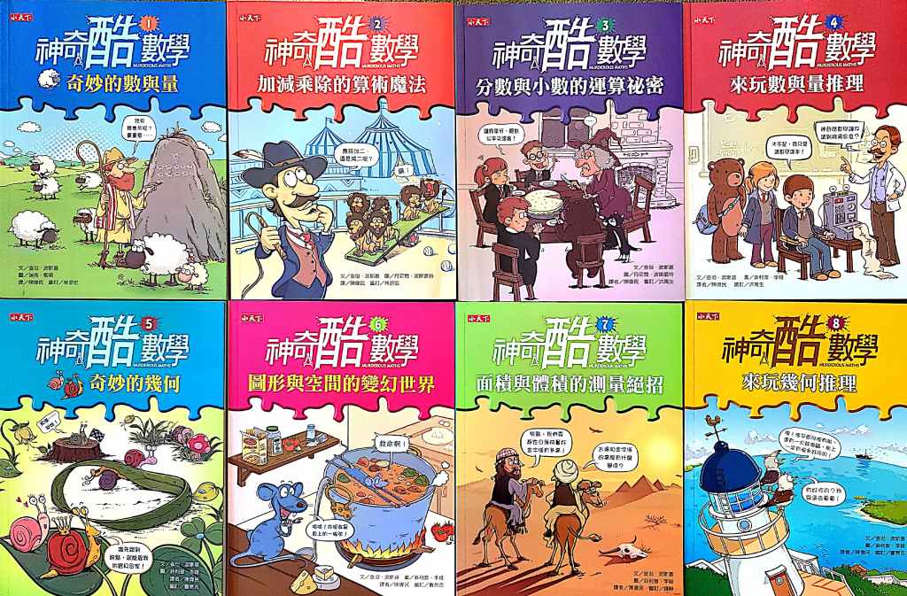 This set of books is the translated version of Murderous Math series. This set has no zhuyin to assist and the math is set for middle to upper elementary going into middle school math territory. It has some decimals, exponents, simple algebra and geometry and some trigonometry. My older one is in pre-algrbra at AOPS Academy so this was an easy read for her and she enjoyed it very much often times laughing while reading and letting me know the differences on how differently they taught math from AOPS or Beast Academy.